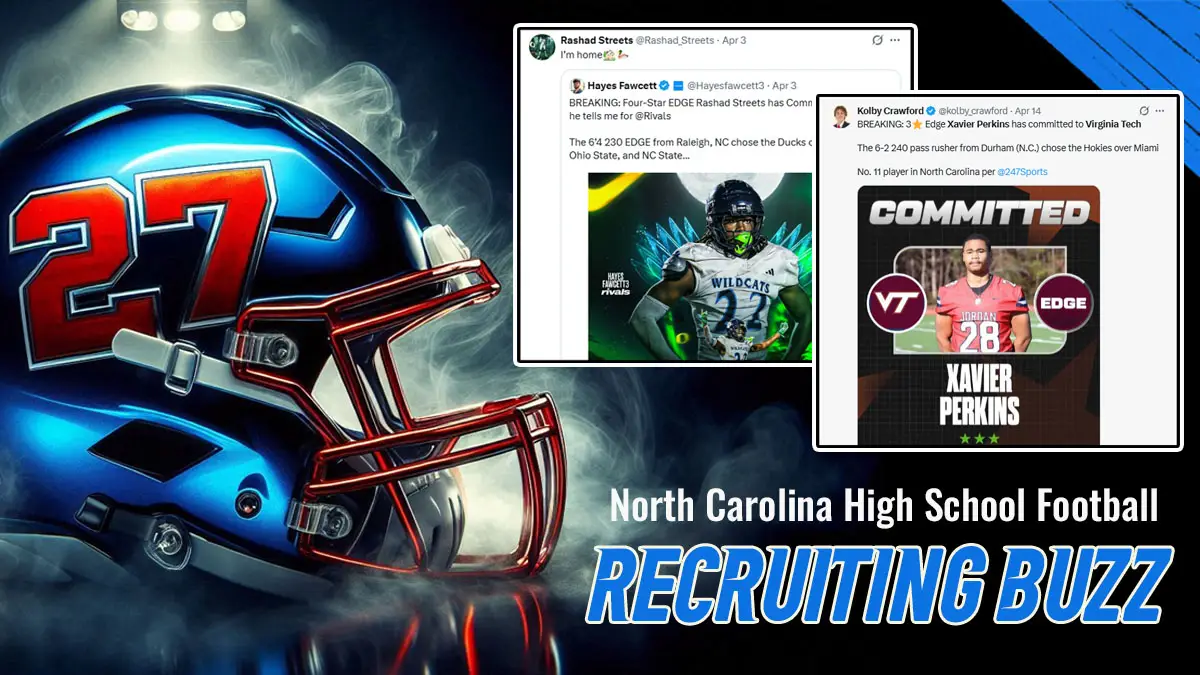 Millbrook High’s Rashad Streets announced a commitment to Oregon – live during the Pat McAfee Show – in early April. Durham Jordan’s Xavier Perkins pledged to Virginia Tech on April 14, the first North Carolina recruit to commit to new Hokies coach James Franklin.