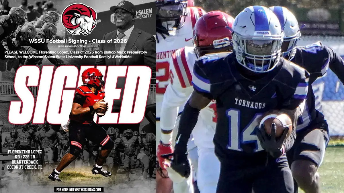 Winston-Salem State has added QB prospect Florentino Lopez to its 2026 class, while Brevard transfer Jeremyah Lane has committed to FCS Delaware State. Images courtes WSSU and Brevard athletics. Lane photo by Tony Belcher.