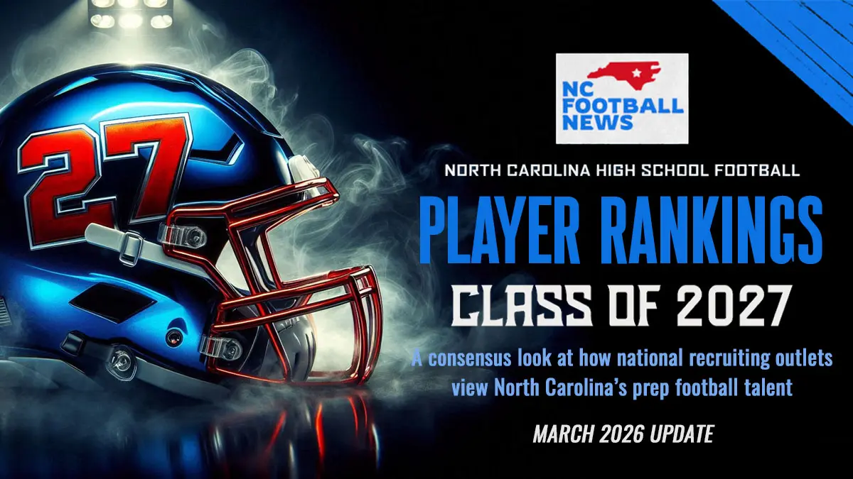 North Carolina continues to churn out elite high school football talent, and national recruiting outlets are taking notice. Entering the spring visit season, more than 40 high school prospects from our state’s Class of 2027 have been evaluated and ranked by analysts at 247Sports, Rivals and/or ESPN.